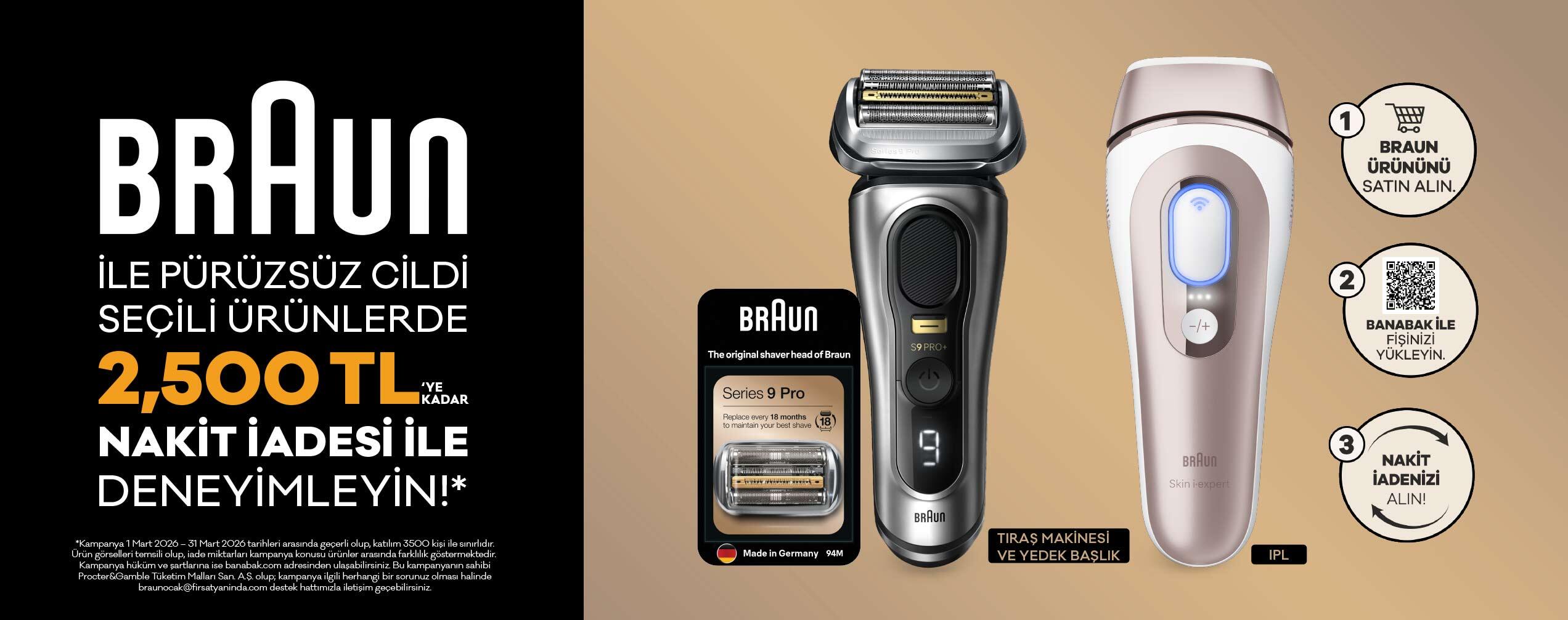 1921 yılında Almanya’da kurulan Braun, kişisel bakım teknolojilerinde kalite, güven ve yenilik denince akla gelen markalardan biridir. Tıraş makineleri, epilatörler ve IPL cihazları gibi geniş ürün yelpazesiyle Braun, Türkiye’de de kullanıcılarına ev konforunda profesyonel düzeyde bakım deneyimi sunar. Dayanıklı tasarımları ve üstün mühendisliğiyle Braun, kişisel bakım rutininizi zahmetsiz ve etkili hale getirir.