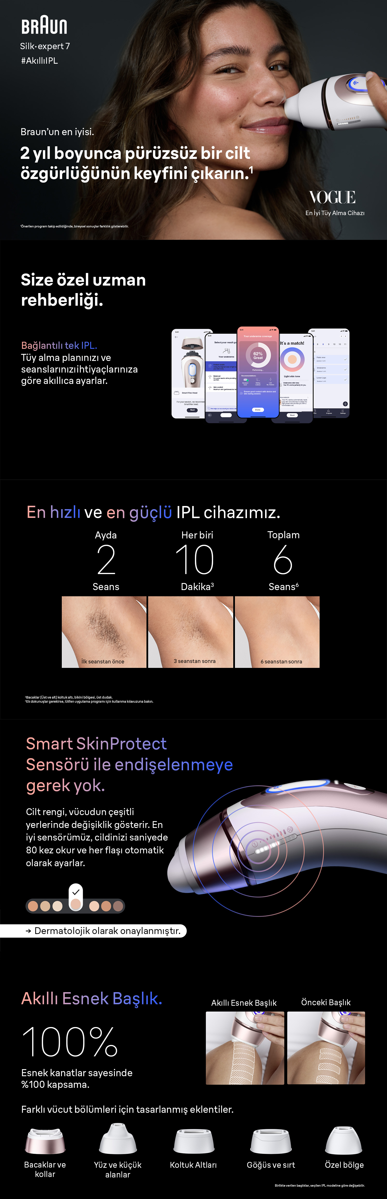 Akıllı ev tipi lazer epilasyon IPL cihazı: Dünyanın ilk akıllı IPL teknolojisi, size göre öğrenen ve uyum sağlayan sistemle 2 yıl boyunca* tüy alma ve yeniden tüy çıkmasından kalıcı olarak özgürlük sunar.