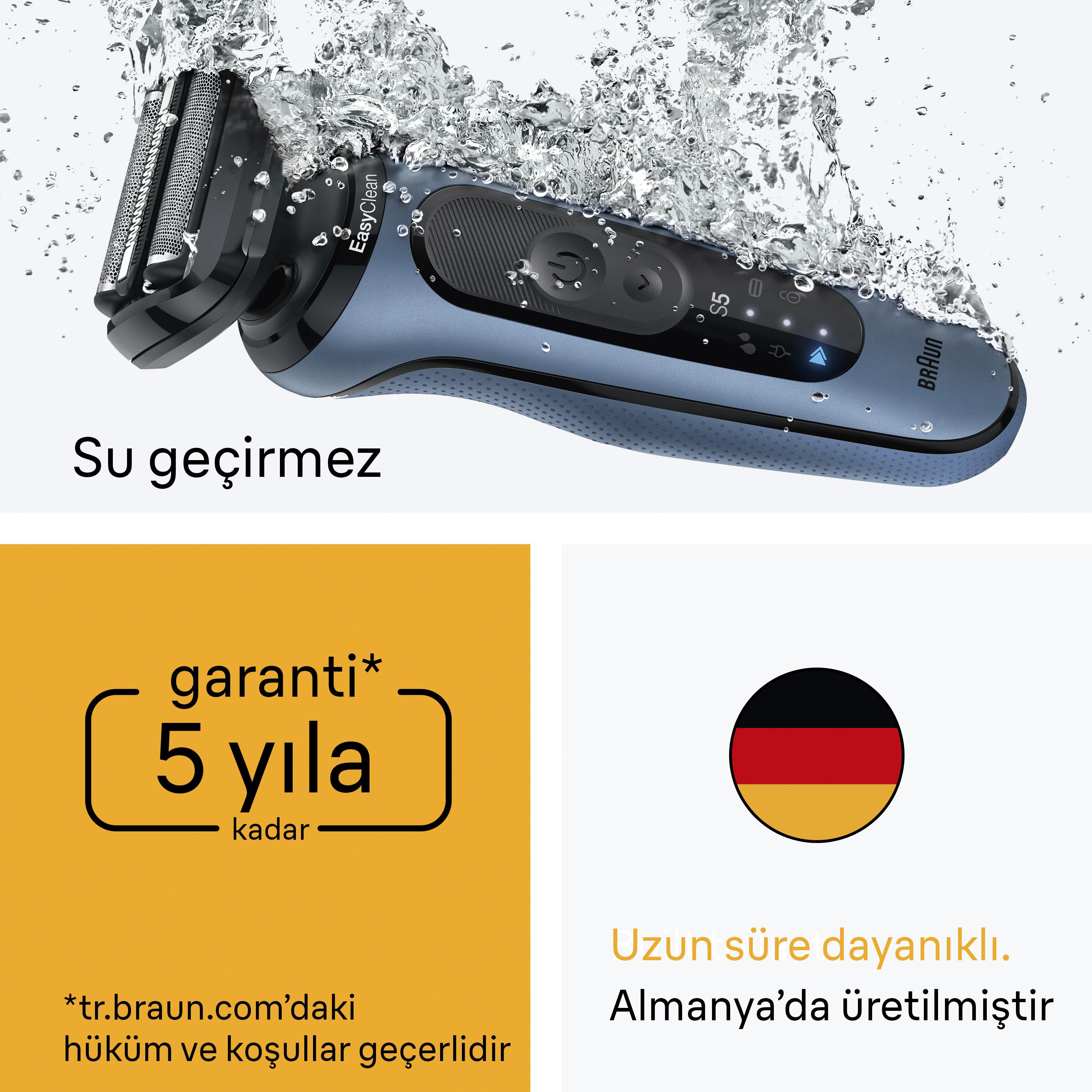 Kutu içeriği: 1 Adet Braun Series 5 tıraş makinesi, 1 Adet şarj cihazı, 1 Adet temizlik fırçası.
