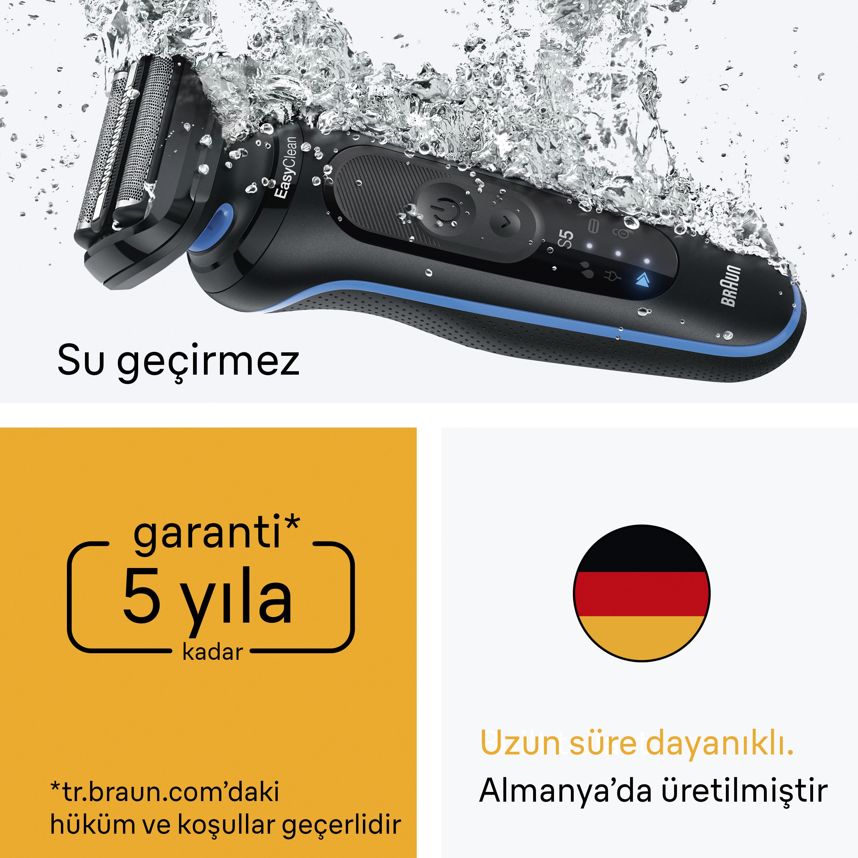 Series 5 Rahat ve Etkili Tıraş.Cilde karşı nazik. 5 yıla kadar garanti* *tr.braun.com’daki hüküm ve koşullar geçerlidir |