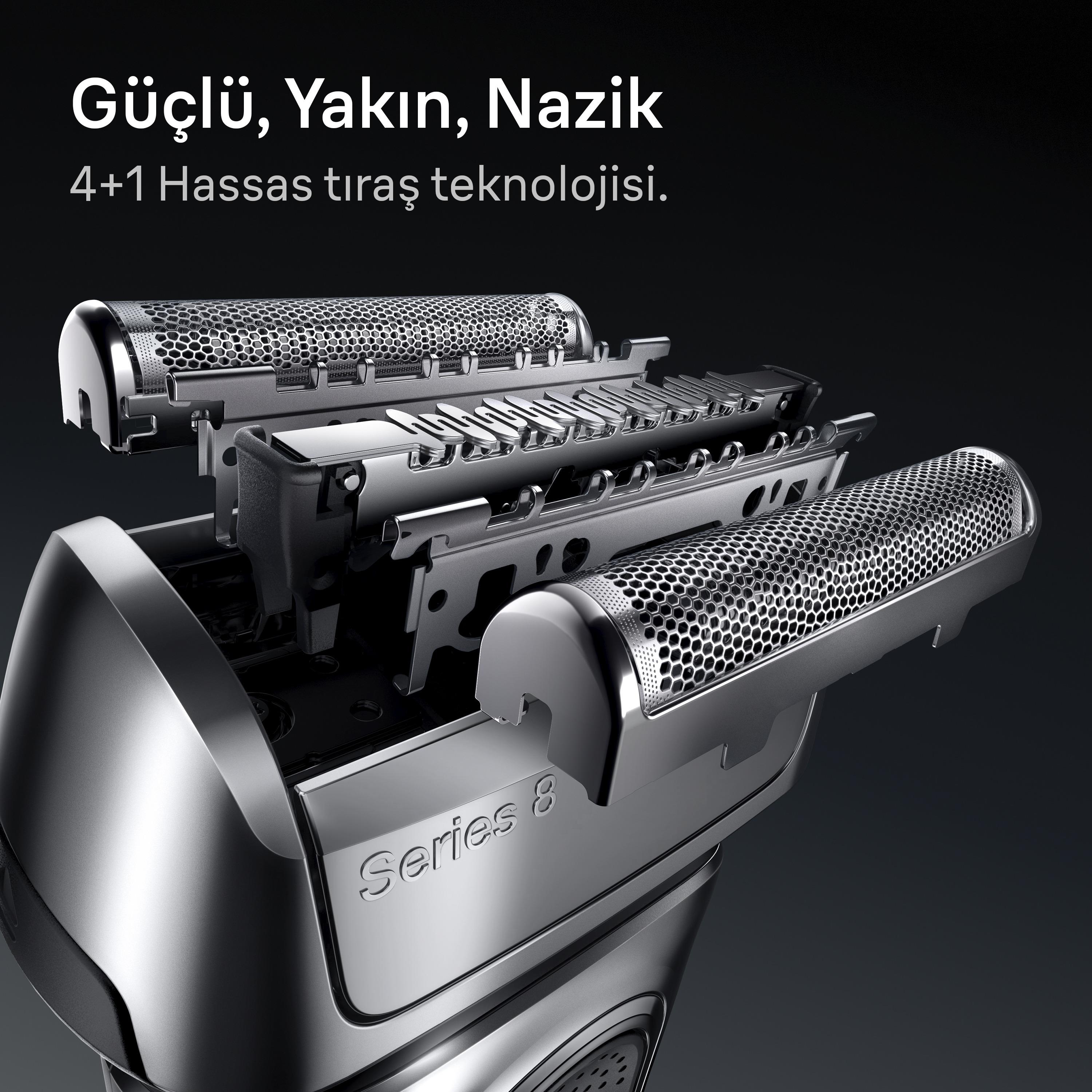 Hassas tıraş teknolojisi.Mükemmel şekilde senkronize edilmiş 4 tıraş elemanı
