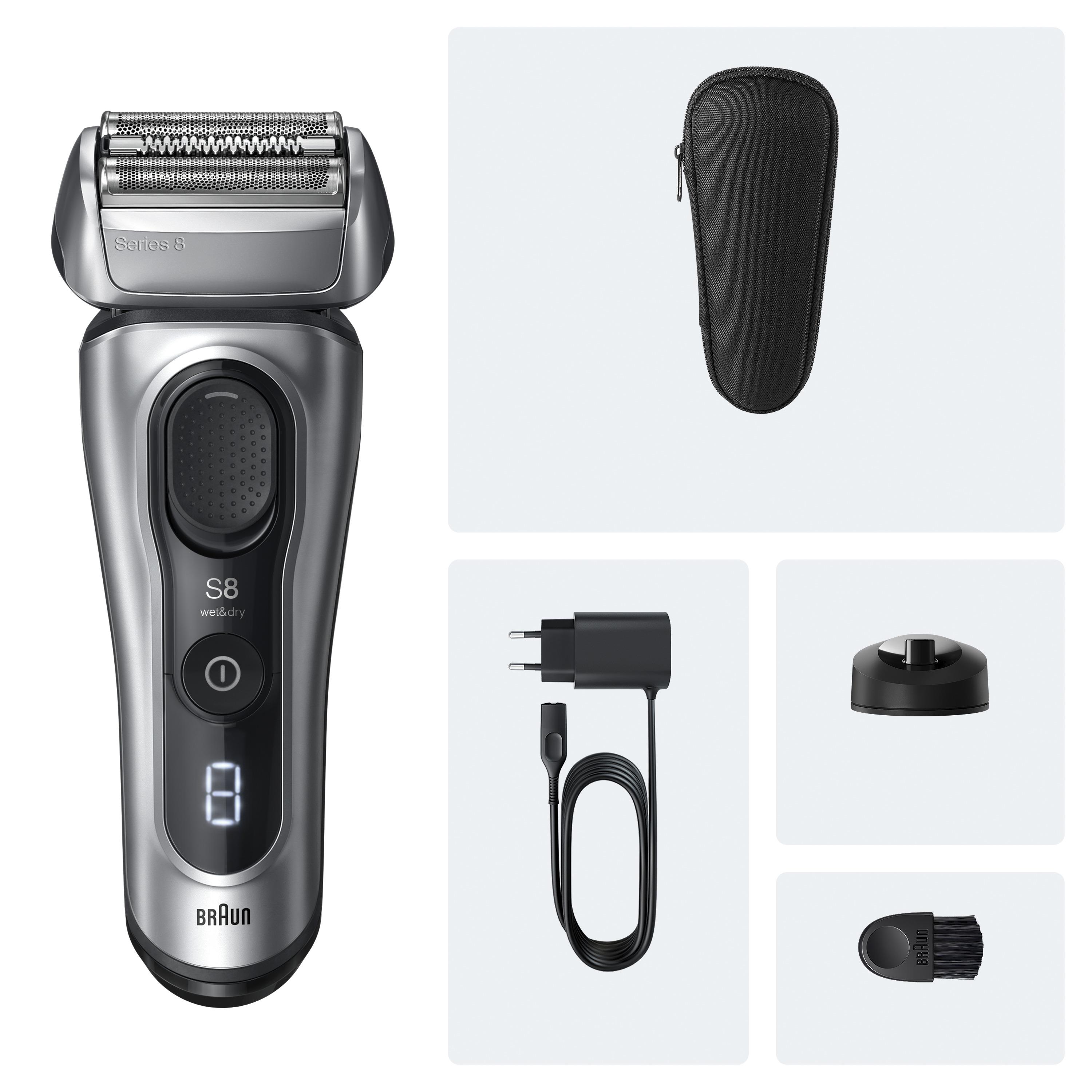 Kutu İçeriği: Cihaz, Taşıma Çantası, Şarj Standı, Şarj Aleti, Temizleme Fırçası.