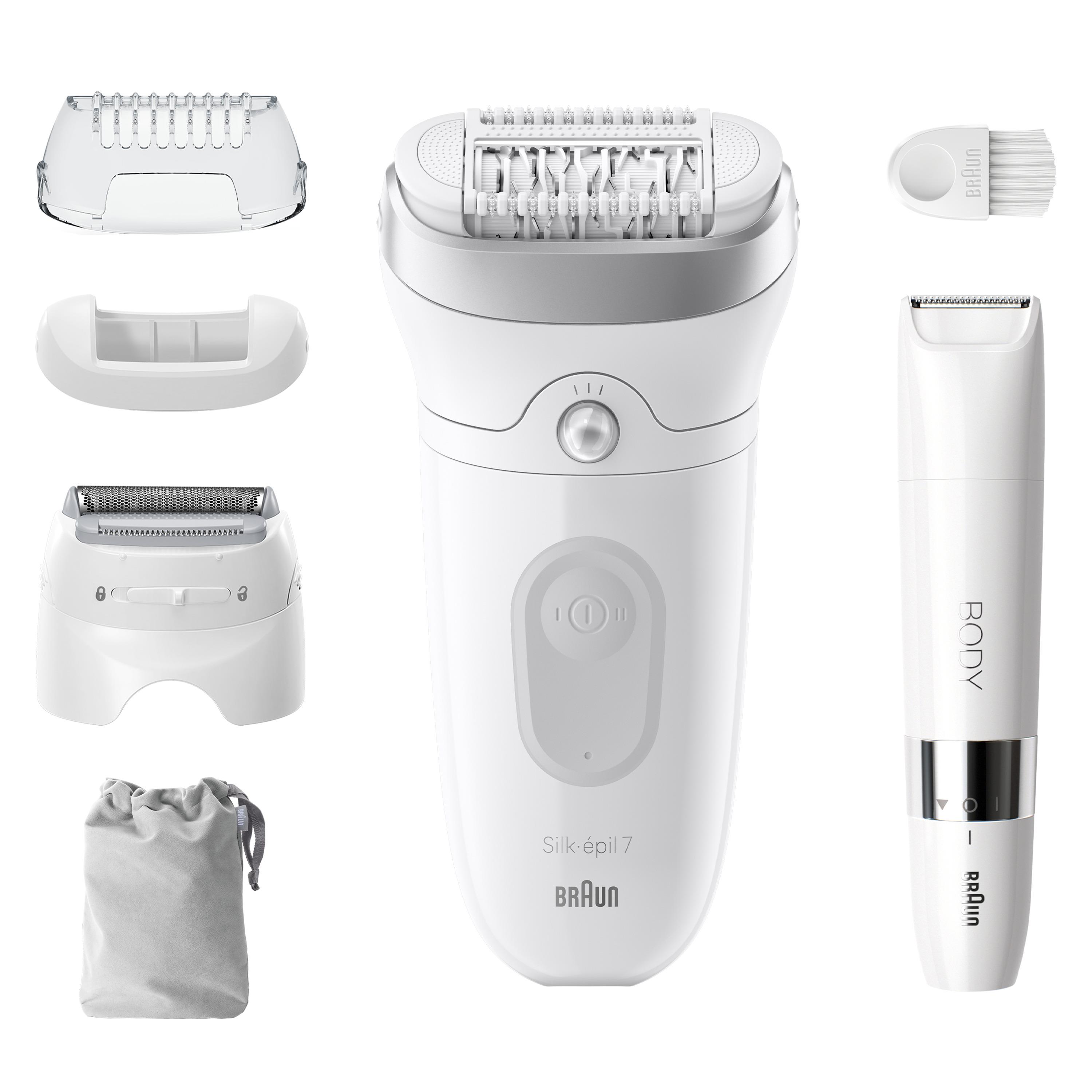 Kutu İçeriği: Cihaz, Tıraş Başlığı ve Tarağı, Cilt Temas Başlığı (‘Masaj Silindirli Başlık’ kullanılmak istenmiyor ise), Body Mini Düzeltici, Çanta ve Temizlik Fırçası.