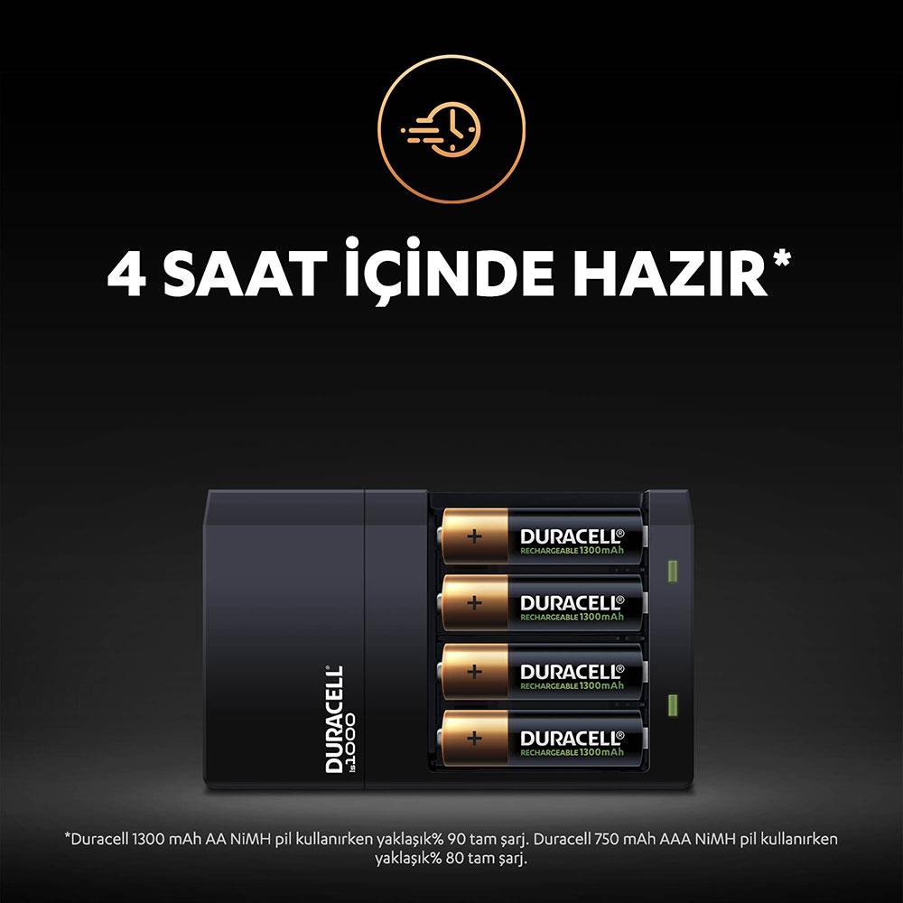 Duracell Yüksek Hızlı Şarj Cihazı - 4 saat içinde hazır * (Duracell 1300 mAh AA NiMH pil kullanırken yaklaşık% 90 tam şarj. Duracell 750 mAh AAA NiMH pil kullanırken yaklaşık% 80 tam şarj.). Duracell Yüksek Hızlı Şarj Cihazı, hayatınızda olan hiçbir şeyi kaçırmamak için basit, güvenli ve güvenilir bir çözümdür. Duracell Yüksek Hızlı Şarj Cihazı kısmi şarj göstergesine sahiptir ve piller dolduktan sonra şarj cihazı aşırı ısınmayı önlemek için otomatik olarak kapanabilir. 9 güvenlik özelliği, ihtiyaç duyduğunuz güce hiçbir endişe duymadan kavuşmanızı sağlar. Şarj cihazı, Duracell’in uzun ömürlü gücüne her gün güvenebilmeniz için 5 yıllık Duracell garantisine sahiptir, böylece Duracell’in her gün en iyi, uzun ömürlü gücüne güvenebilirsiniz. Mükemmel güç, tam güç, yüksek performans ve paranızın karşılığını tam olarak veren yeni bir maceraya başlayın.
