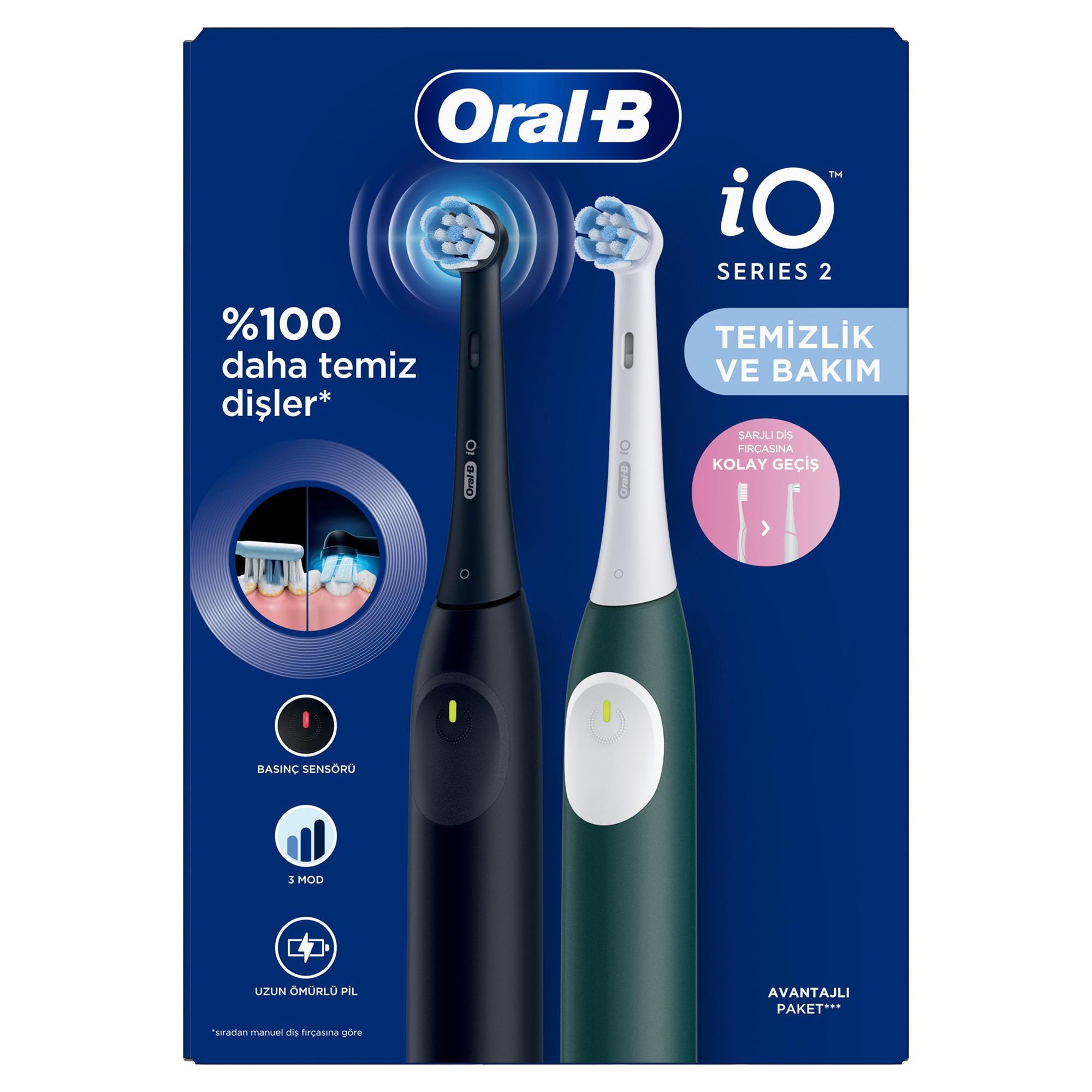 Oral-B iO 2 Şarjlı Diş Fırçası Seti 2'li - Siyah / Yeşil